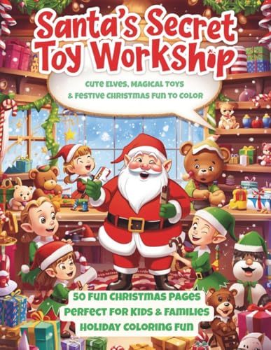 Santa’s Secret Toy Workshop Coloring Book for Kids: Cute Christmas Elves, Magical Toys and Festive Holiday Coloring Pages – Fun and Easy Winter Activity Book for Kids Ages 3–8
