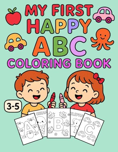HAPPY ABC Coloring Book 50+ ABC Illustrations For Kids Boys & Girls Aged 3 - 5: A Fun and Educational Coloring Book with Letters Animals Toys and more ... and Preschoolers Play & Learn Activity Book