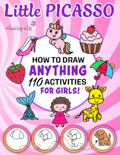 Little Picasso How To Draw Anything 110 Activities For Girls: 110 Drawings of Cute Toys, Animals, Food, Gifts, and other Amazing Things | Activity Book For Kids | 101 + Step by Step