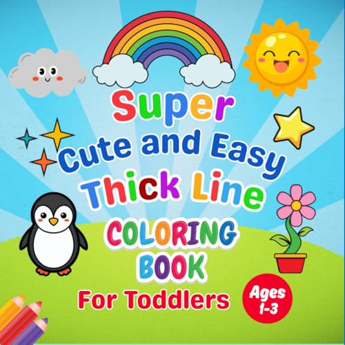 Super Cute & Easy Thick Line Coloring Book for Toddlers Ages 1-3: Fun and Simple Big Shapes - Animals, Vehicles, Flowers, Food, Toys, Numbers, ... Little Hands - First Learning Activity Book