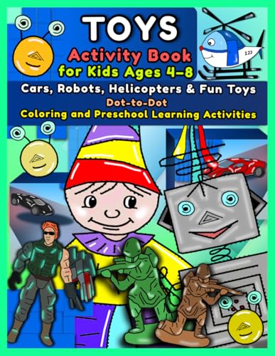 Toys Activity Book for Kids Ages 4–8: Cars, Robots, Helicopters and Fun Toys – Dot-to-Dot, Coloring and Preschool Learning Activities: A Fun and Easy ... – Develops Creativity and Fine Motor Skills