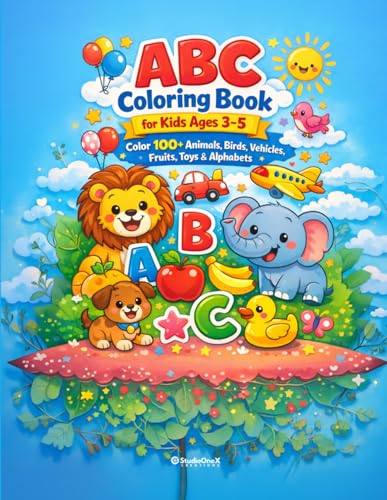 ABC Coloring Book for Kids Ages 3–5: Color 100+ Animals, Birds, Vehicles, Fruits, Toys & Alphabets | Fun & Easy Coloring Book for Toddlers & Preschool ... | Early Learning Activity Book for Ages 3–5