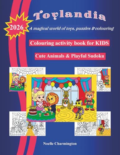Toylandia: Colouring Activity Book for Kids: Colouring Book with 50 Cute Animals & Fun Toys Scenes + Activity Book with Bonus Easy Sudoku