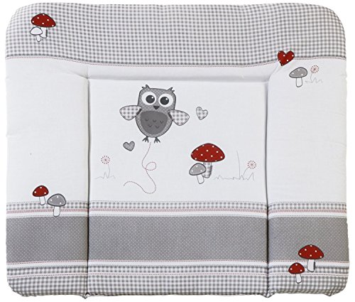 roba Skötbädd Adam & Uggla - Mjukt skötbäddsöverdrag 85 x 75 cm med ugglemotiv - Överdrag för skötbord PU-belagd - Grå rutig