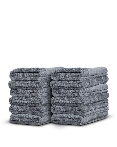 Adams gränslös grå kantlös mikrofiberhandduk – premiumkvalitet 480 gsm, 40 x 40 cm plyschmikrofiber – delikat touch för de mest delikata ytorna (12-pack)