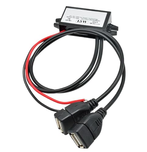 Heemol 12 V till USB, 12 V till 5 V USB-adapter, buk-omvandlarmodul 3 A 15 W DC till DC bilströmomvandlare adapter (dubbel USB)