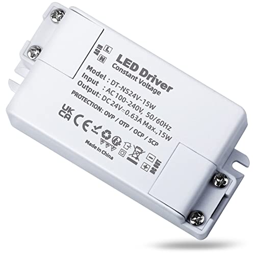 DUSKTEC LED-Transformator 230 V (AC) till 24 V (DC), Ultra platt Strömförsörjningstransformator 24V 0,63A 15W LED-drivrutin Power Supply Adapter för LED Strips, LED band, G4 MR11 MR16 LED-glödlampor