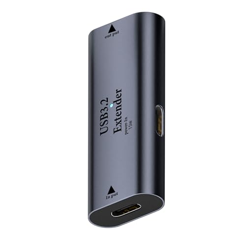QIANRENON USB C-signalförstärkare, förlängare, adapter, förlängning, 10 m/32,8 fot USB C 3,2 långdistansladdning, data anslutning 5 Gbps 5 V/3 A, inbyggt chip/LED/Al-hölje, USB C 15 W extern