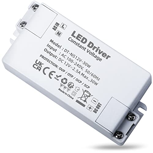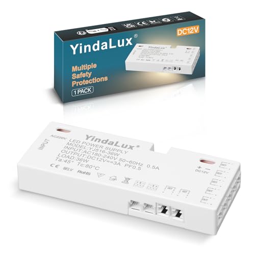 YindaLux Transformator 220 V till 12 V 3 A LED-drivrutin 36 W, ingen LED-blinkning, inget buller, AC till DC spänningsomvandlare, konstant transfo-adapter för infällda spotlights, 12 V