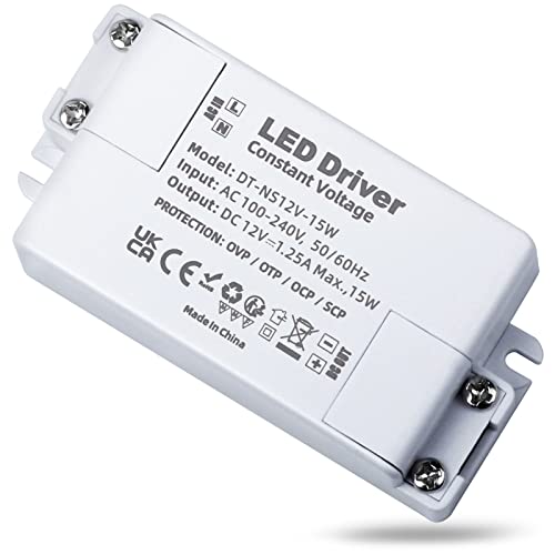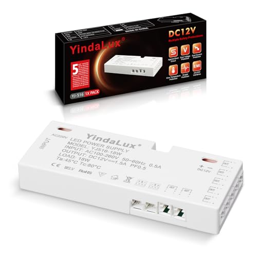 YindaLux Transformator 220 V till 12 V 1,5 A LED-drivrutin 18 W, dimbar, ingen LED-blinkning, inget buller, AC till DC spänningsomvandlare, konstant transfo-adapter för infällda spotlights, 12 V