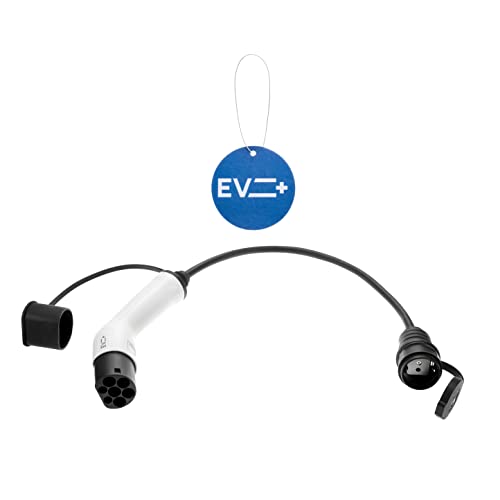 EV + EV Adapter Laddningskontakt för Elbil, EV-Adapter Typ 2 IEC 62196 för Schuko Elbilar, EV Kontakt för Elbil Laddningskabel 1-Fas 16A (3,6 kW) Svart/Vit