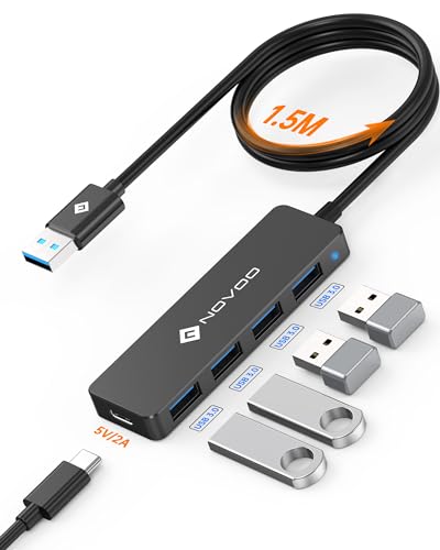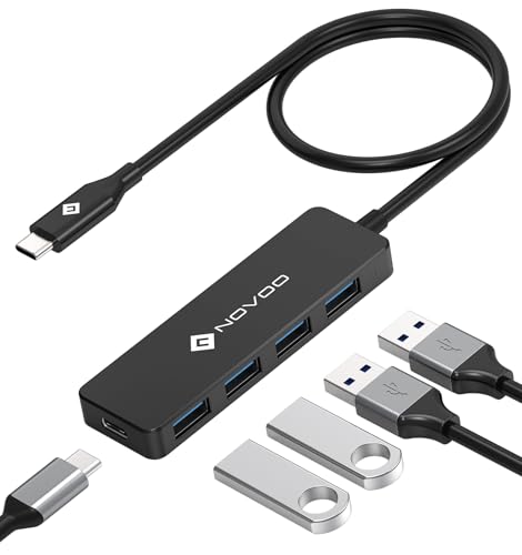 NOVOO USB C-hubb 4 portar USB 3.0, dataöverföring 5 Gbit/s, USB-adapter strömport 5 V/2 A, 60 cm utökad kabel, USB-hubb för MacBook, bärbar dator, mobil hårddisk