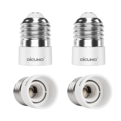 DiCUNO E14 till E27 sockeladapter, högkvalitativ omvandlare av lampsocklar för LED- och glödlampor samt kompaktlysrör, 4 st