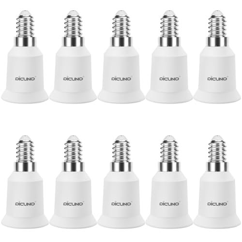 DiCUNO E14 till E27 sockeladapter, högkvalitativ omvandlare av lampsocklar för LED- och glödlampor samt kompaktlysrör, 10 st