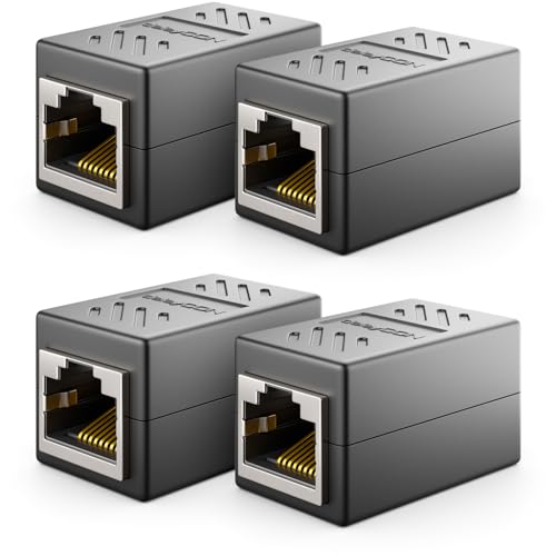 deleyCON 4 Stycken RJ45 Koppling (1000 Mbit) Gigabit LAN-Kabel Förlängningskabel Ethernet Adapter Anslutningsdon Kompatibel med Cat8, Cat7, Cat6, Cat5 Patchkabel DSL POE 2X RJ45-Uttag - Svart