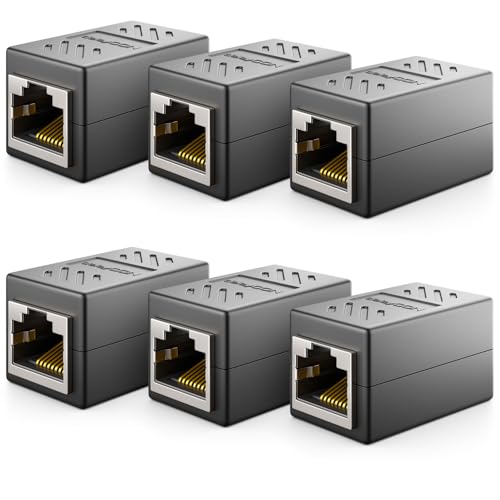 deleyCON 6 Stycken RJ45 Koppling (1000 Mbit) Gigabit LAN-Kabel Förlängningskabel Ethernet Adapter Anslutningsdon Kompatibel med Cat8, Cat7, Cat6, Cat5 Patchkabel DSL POE 2X RJ45-Uttag - Svart