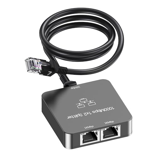 Uzifhdhi Ethernet-splitter 1 till 2 med Ethernet-kabel, Gigabit RJ45 internetsplitter adapter 1 000 Mbps hög hastighet för katt 5/5e/6/7/8-kabel, grå