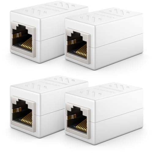deleyCON 4 Stycken RJ45 Koppling (1000 Mbit) Gigabit LAN-Kabel Förlängningskabel Ethernet Adapter Anslutningsdon Kompatibel med Cat8, Cat7, Cat6, Cat5 Patchkabel DSL POE 2X RJ45-Uttag - Vit