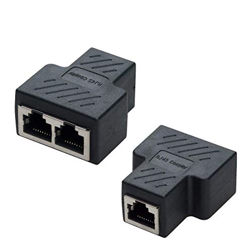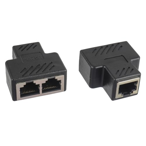 Covvy RJ45 Splitter Connector hona till hona nätverksadapter 1 till 2 honport CAT 5 / CAT 6 LAN Ethernet-kabel Dual Socket Connector Adapter (2 st, svart)