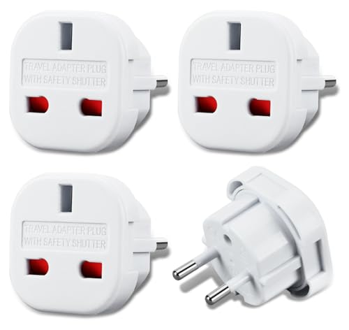 AAA PRODUCTS Hög kvalitet - reseadapter konverterar UK kontakt till 2 stift (rund) EU-kontakt och Storbritannien till USA-adapter - ®, UK to EU Plug Adapter, 4