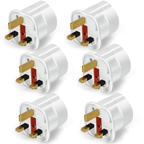 VGUARD Europeisk till UK-adapter – 6-pack kontaktadapter EU till UK kontaktadapter 2-stiftskontakt adapter till 3-stift för reseomvandlare från Frankrike, Italien, Spanien, Tyskland till