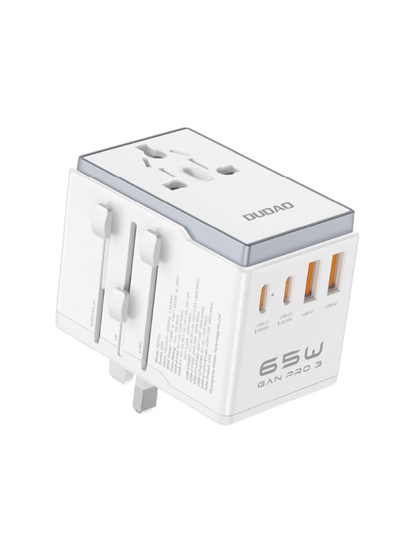 Dudao A65Pro 65W EU / US / JP / AUS / UK travel adapter 2x USB-C 2x USB-A - white