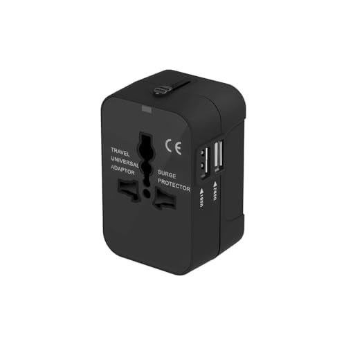 VoltShine Universell resekontakt adapter internationell adapter med två USB-portar för Japan Kina Kanada USA EU UK AU Om 15 länder till jul (svart)