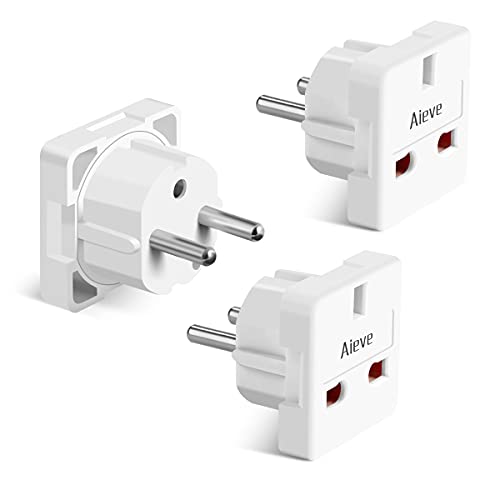 AIEVE 3 stycken UK till EU-adapter, UK typ G 3-stift till Tyskland/Europa 2-stifts resekontakt, adapter, adapterkontakt (vit)