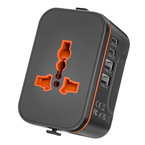 LENCENT 120W Snabb Laddning Universal Reseadapter över Hela Världen, GaN III Internationell Travel Adapter med 3 PD3.0 Typ C+1 QC USB A, Socket Adapter Worldwide för DE USA UK CN, Typ C/G/A/I, Svart