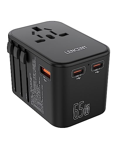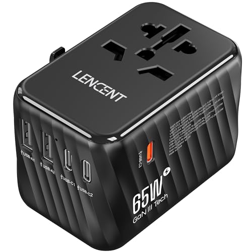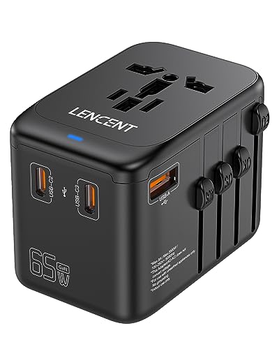 LENCENT 65W Snabb Laddning Universal Reseadapter över Hela världen, GaN III Internationell Travel Adapter med 3 PD Typ C+1 QC USB A, Socket Adapter Worldwide för DE USA UK AUS CN, Typ C/G/A/I, Svart
