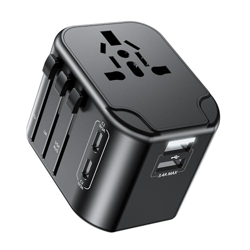 Alyvisun Worldwide Travel Adapter, över Hela Världen, med 2 USB-C och 2 USB-A portar, 5V 3.4A/17W International Socket Adapter, Universal Adapter-för länder som EU, USA, Storbritannien, Australien