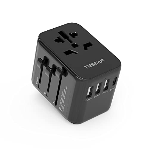 TESSAN Worldwide Travel Adapter, Universal Travel Connector with 3USB, 1USB C and 1AC Socket, International Socket Adapter, Universal Adapter for Germany USA England Italy Australia, Black