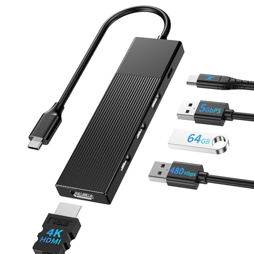 Tymyp USB C-hub, Multiport-adapter, 6-i-1 USB-distributör kompatibel med Air/Pro/iPad/Surface/andra Type-C-enheter, 4K HDMI, USB 3.0, 2x USB 2.0, SD/TF 2.0