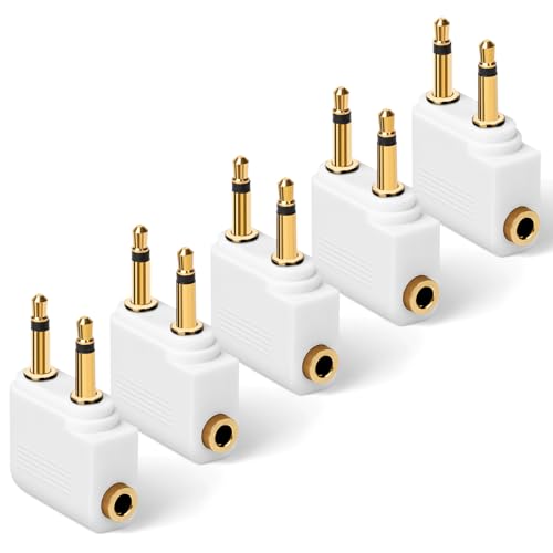 AXFEE Flygplan flyg hörlurar adapter, 5-pack guldpläterad 3,5 mm för hörlurar, hörlursuttag, stereo aux-uttag, vit
