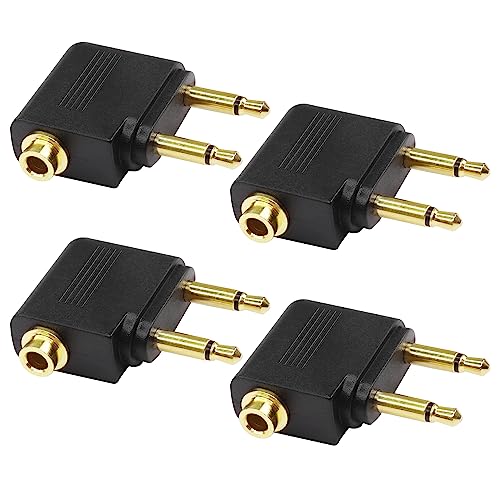 MEIRIYFA Flygplan flyg hörlurar adapter, dubbel 3,5 mm hane till 3,5 mm hona flygplan flygplan headset öronsnäckor adapter guldpläterad – 4-pack