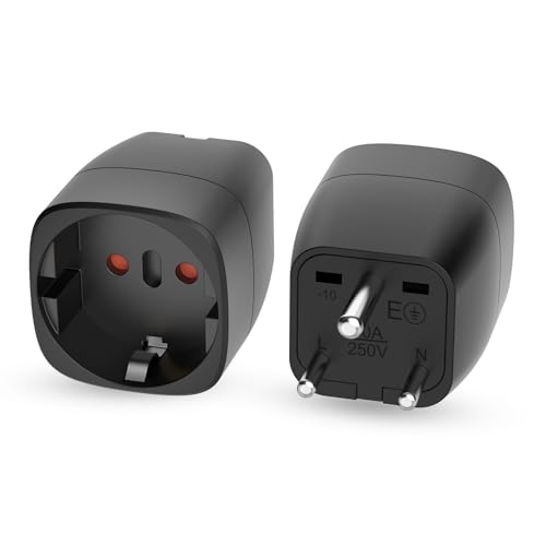 Oliveria 2 st reseadapt, Frankrike till Indien, EU till Indien adapter, Schuko EU till typ D-uttag, för Indien, Sri Lanka, Nepal, Kongo - svart