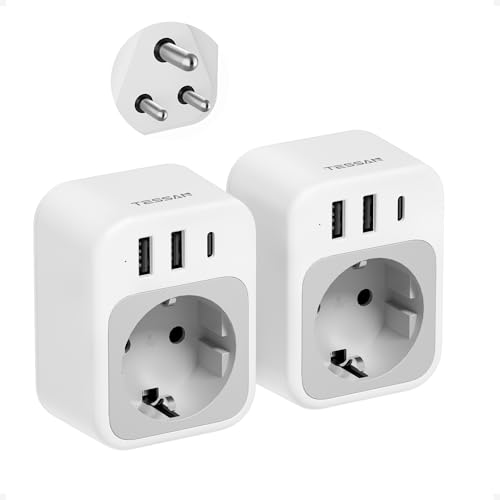 TESSAN Reseadapter Sri Lanka 2 ST, Reseadapter Indien Adapter Tyskland Stiftet med 2 USB A och 1 USB C, Adapter Sri Lanka Uttag för Indien, Nepal, Malediverna, Uttagsadapter Typ D