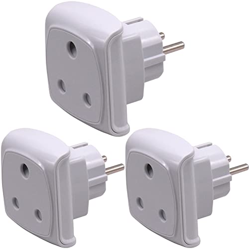 Sydafrika 3-stifts Stor Kontakt Typ M-adapter (INTE för Indien Liten 3-stifts Typ D Kontakt) Konvertera till 2-stifts EU/Sverige Uttag med Säkerhetslucka (3 Stycken, Vit)