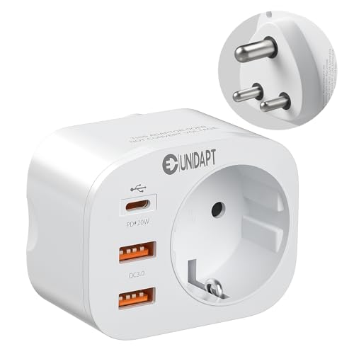 Unidapt 4-i-1 reseadapter för Indien med 3 USB, Indien adapter, reseadapter Indien, resekontakt typ D, adapter för Sri Lanka, Indien, Nepal, resekontakt Indien strömadapter