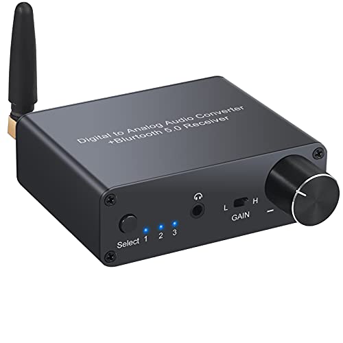 LiNKFOR Digital analog ljudomvandlare 192 KHz Bluetooth DAC med hörlursförstärkare med DAC strömförsörjning med Bluetooth-mottagare V5.0 D/A-adapter med optisk kabel och koaxialkabel