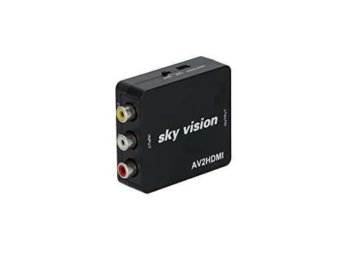 Sky Vision Adapter RCA till HDMI, AV/RCA/FBAS till HDMI, videoljudomvandlare, 1080P, PS2, Wii N64, stöder PAL/NTSC, Plug and Play, svart