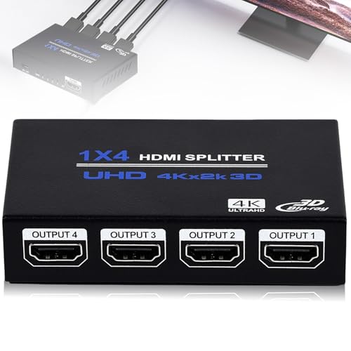 Asfrode 4K HDMI-splitter 1 i 4 out, 4K HD samtidig adapter splitter 4 bildskärmar spegelfördelare stöd 4K/30Hz 1080p 3D HDCP 1.4 för PS3 PS4 Blu-Ray DVD-spelare projektor