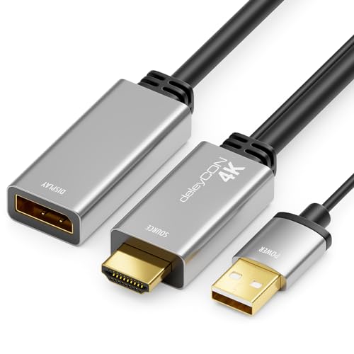 deleyCON 4K HDMI till DisplayPort-Adapter (för DisplayPort-Monitor) 4K@60Hz HDR - Aluminiumhölje - Konverteringskabel för PS4 PS5 XBOX PC Dator Notebook Monitor