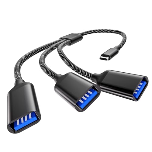 NEUTYPECHIC USB C-splitter 1 till 3, adapter Tipo C-kontakt till USB A 2.0-honkabel, USB-y-kabel för OTG, dataöverföring, portförlängare strömfördelare för MacBook, Pro iMac PS4 PC Samsung (svart)