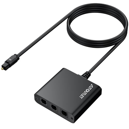 AUTOUTLET Optisk splitter1 i 3-uttag, aluminium 1 x 3 SPDIF Toslink-splitter med 1 m optisk kabel, digital ljudoptisk distributör optisk ljudkabel adapter för TV PS4 PS5 Xbox DVD Soundbar