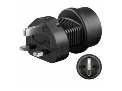 Maclean MCE72 UK 3-stifts till europeisk (Schuko) 2-stift, adapter, reseadapter, resor, Storbritannien-Tyskland