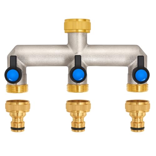 3-vägs vattenkran vattenfördelare av mässing för 3 enheter/trädgårdsslangar, 3 distributör 3/4 tum adapter 1/2 tum med kulventil för att justera och stänga av vattenflödet