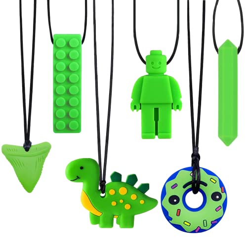 Tixiyu tugghalsband, 5-pack sensoriskt tugghalsband set tillverkat av livsmedelssäkert silikonsäkerhet för barn tandsprickning, silikon tuggpinnar för autism, ADHD, munmotorer pojkar och flickor barn