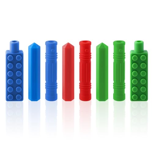 Chew Pencil topperset (8-pack), tuggkedja i silikon med tuggbar bitring, pennhållare, tuggbar smyckesleksak, tuggleksak för pojkar, flickor, barn med autism, ADHD