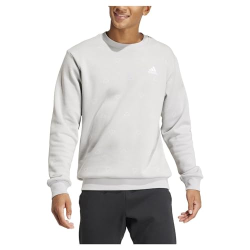 adidas För Män Seasonal Essentials Monogram Graphic Crew Fleece Sweatshirt, grey two, L
